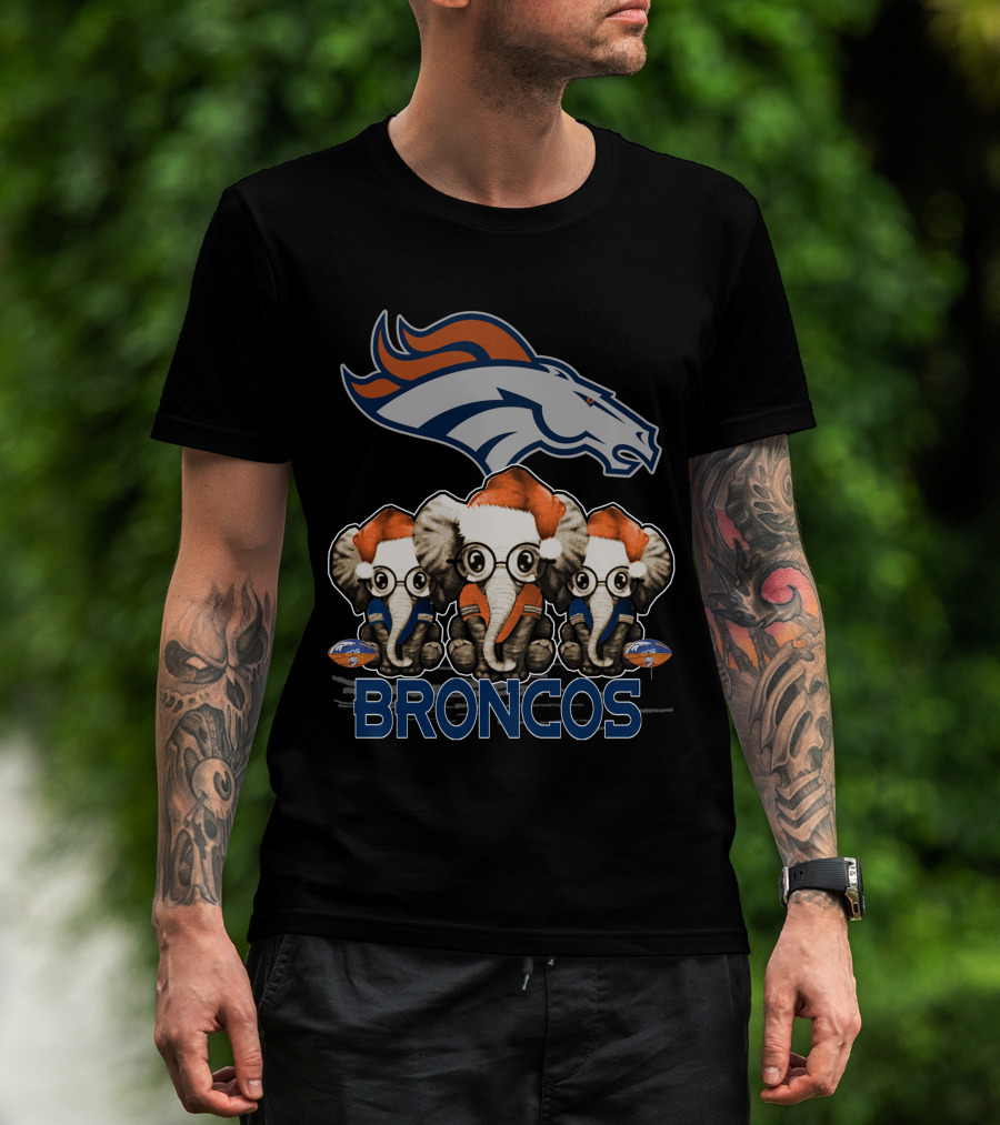 DENVER BRONCOS Christmas Elephants With Santa Hats T-Shirt