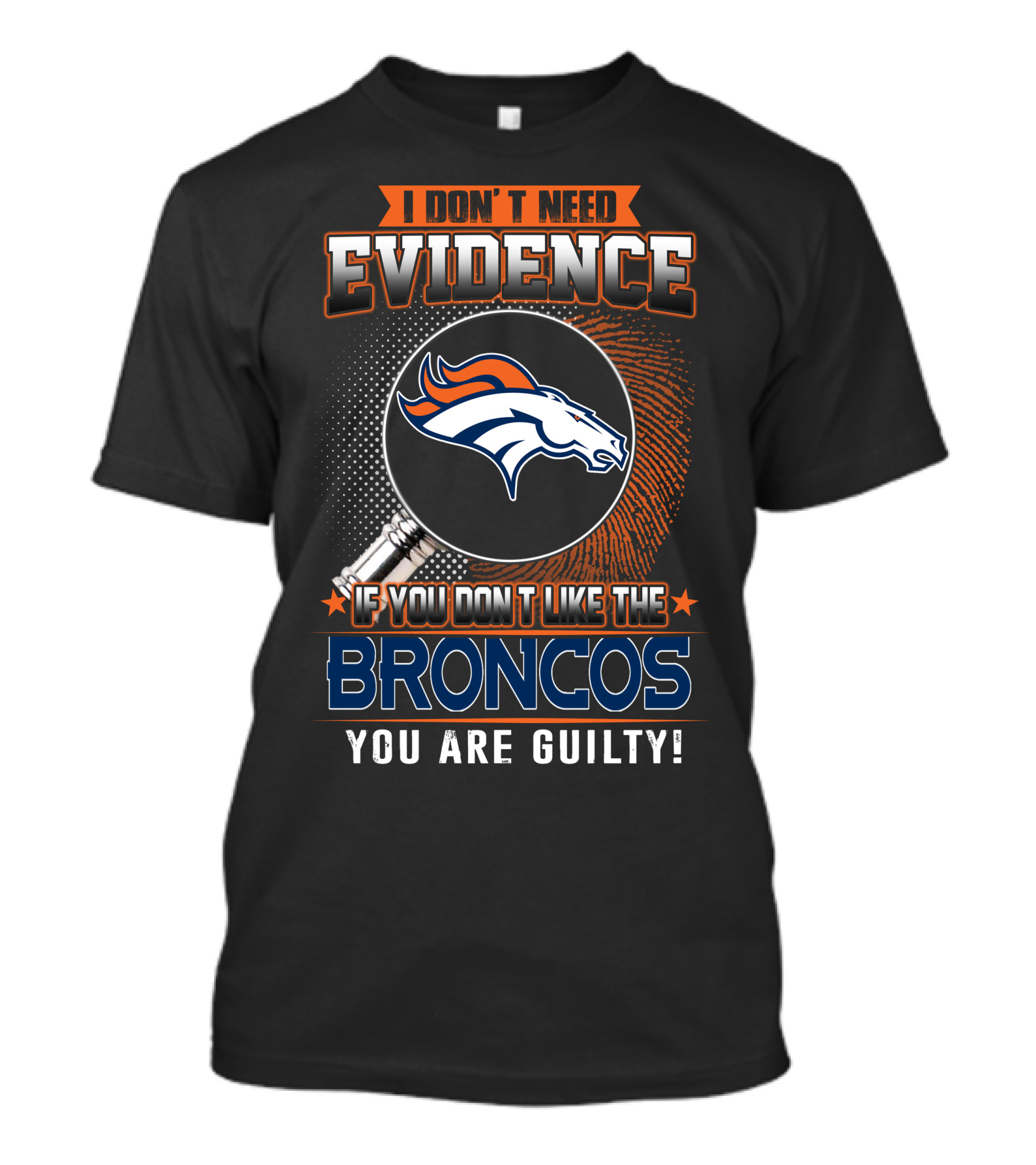 I DON'T NEED EVIDENCE IF YOU DON'T LIKE THE BRONCOS YOU ARE GUILTY T-Shirt
