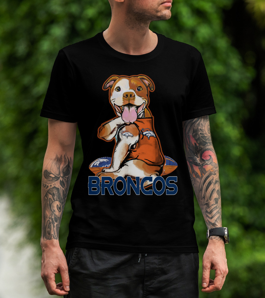 Pittbull Wearing Denver Broncos Jersey With Football And Broncos Text T-Shirt