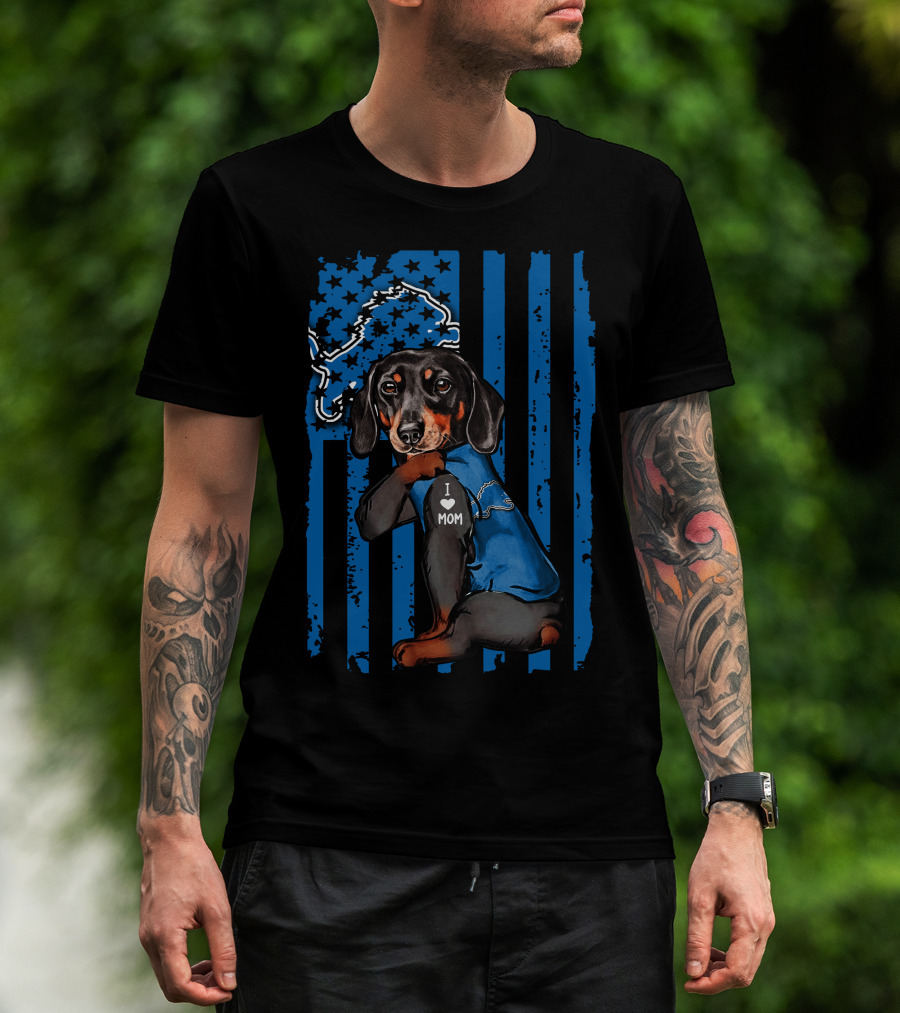 Dachshund I Love Mom Detroit Lions Fan T-Shirt