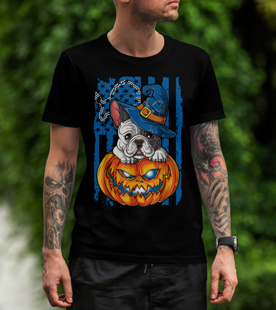 Hlw Bulldog Halloween Detroit Lions Pumpkin Wizard T-Shirt
