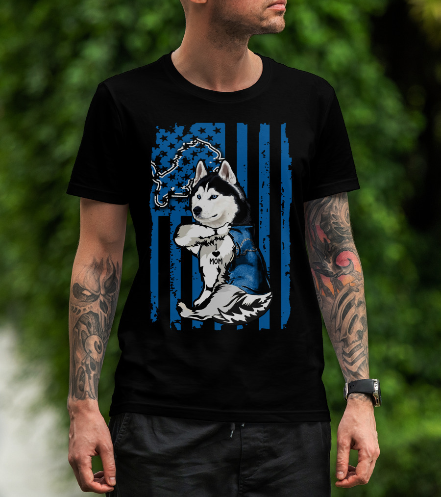 Siberian Husky Detroit Lions American Flag Mom T-Shirt