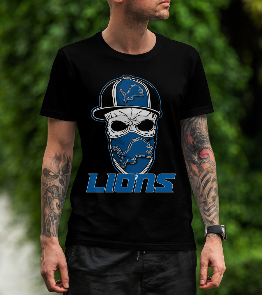 The Skull Hat Lions Detroit Lions T-shirt is designed for everyday wear and a consistent fit. Fabric is pre-shrunk ring-spun cotton with durable stitching. See the size chart below for exact measurements.