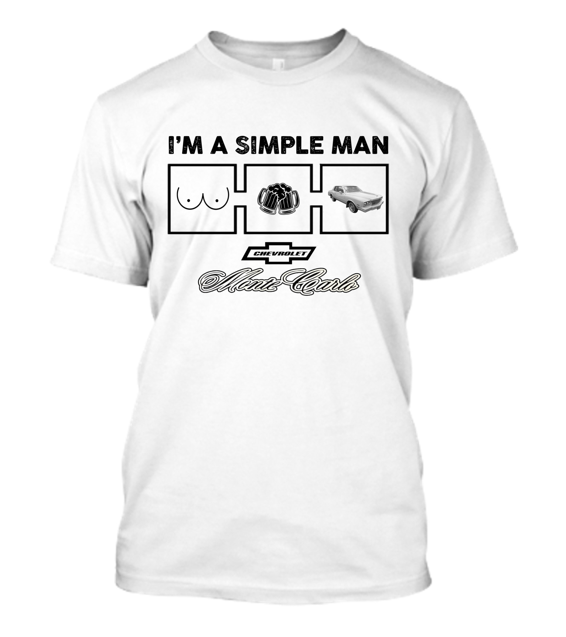 The I'm a Simple Man Chevrolet Monte Carlo 1980 T-shirt is designed for everyday wear and a consistent fit. Fabric is pre-shrunk ring-spun cotton with durable stitching. See the size chart below for exact measurements.