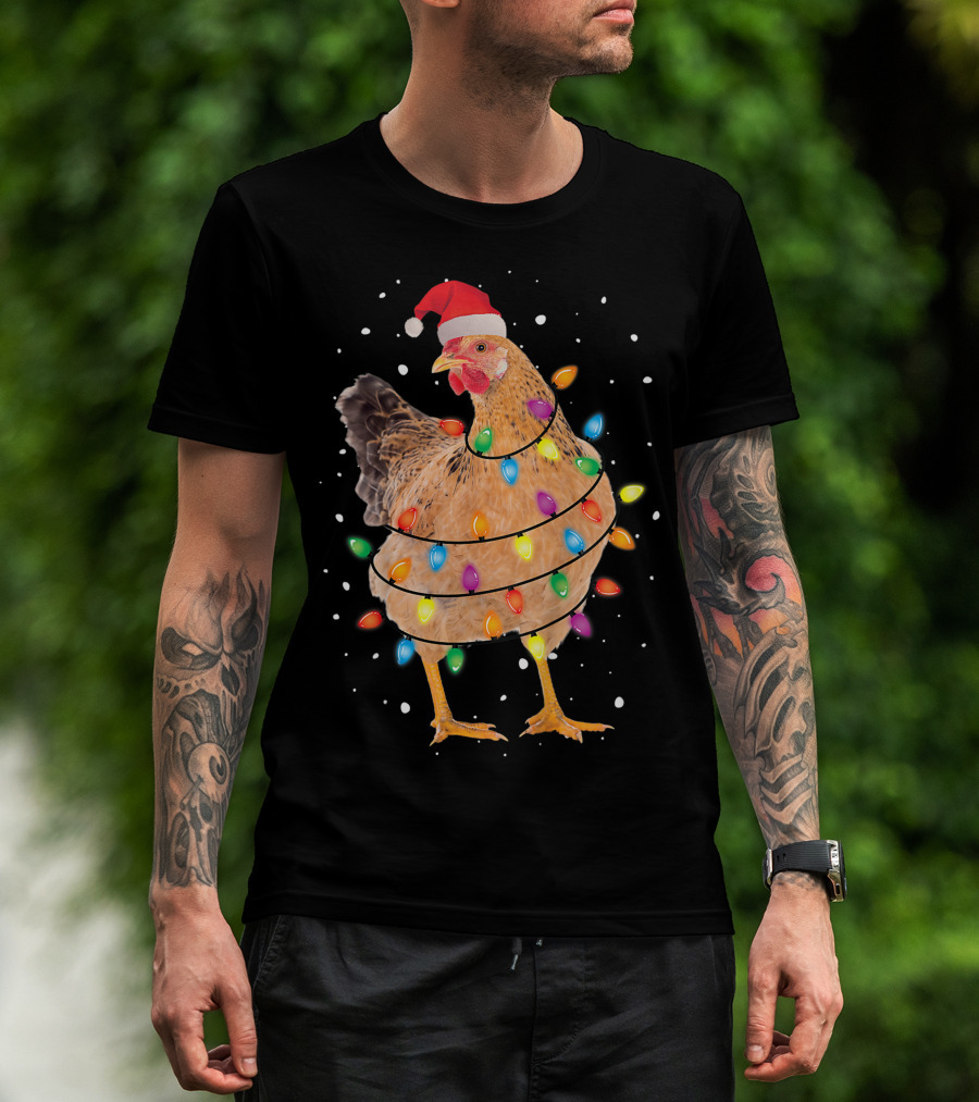 Christmas Lights Chicken Santa Funny Xmas Tree Festive Holiday T-Shirt