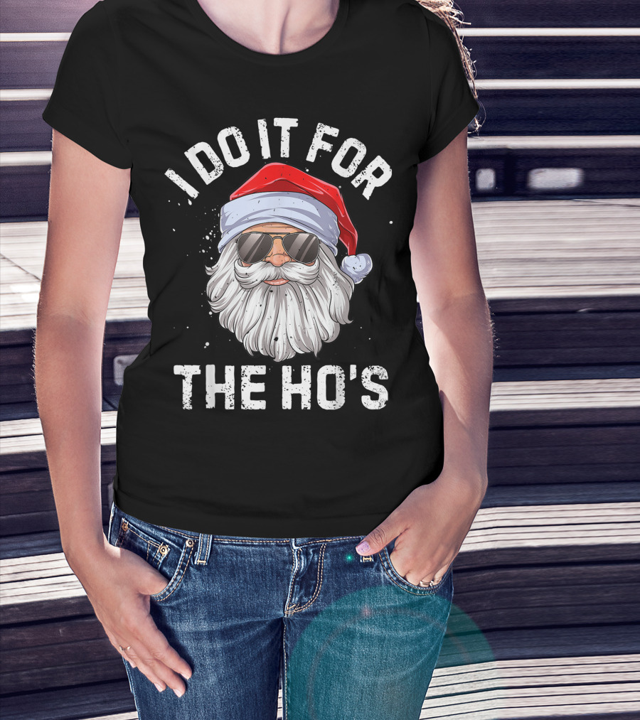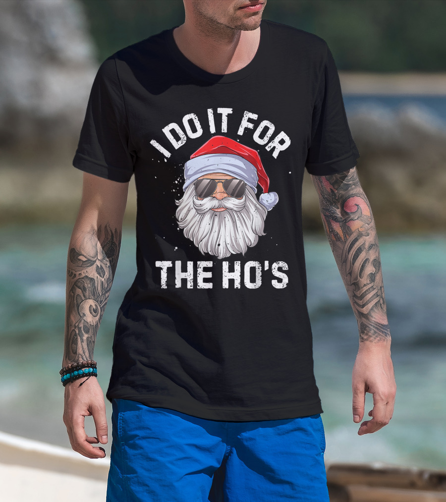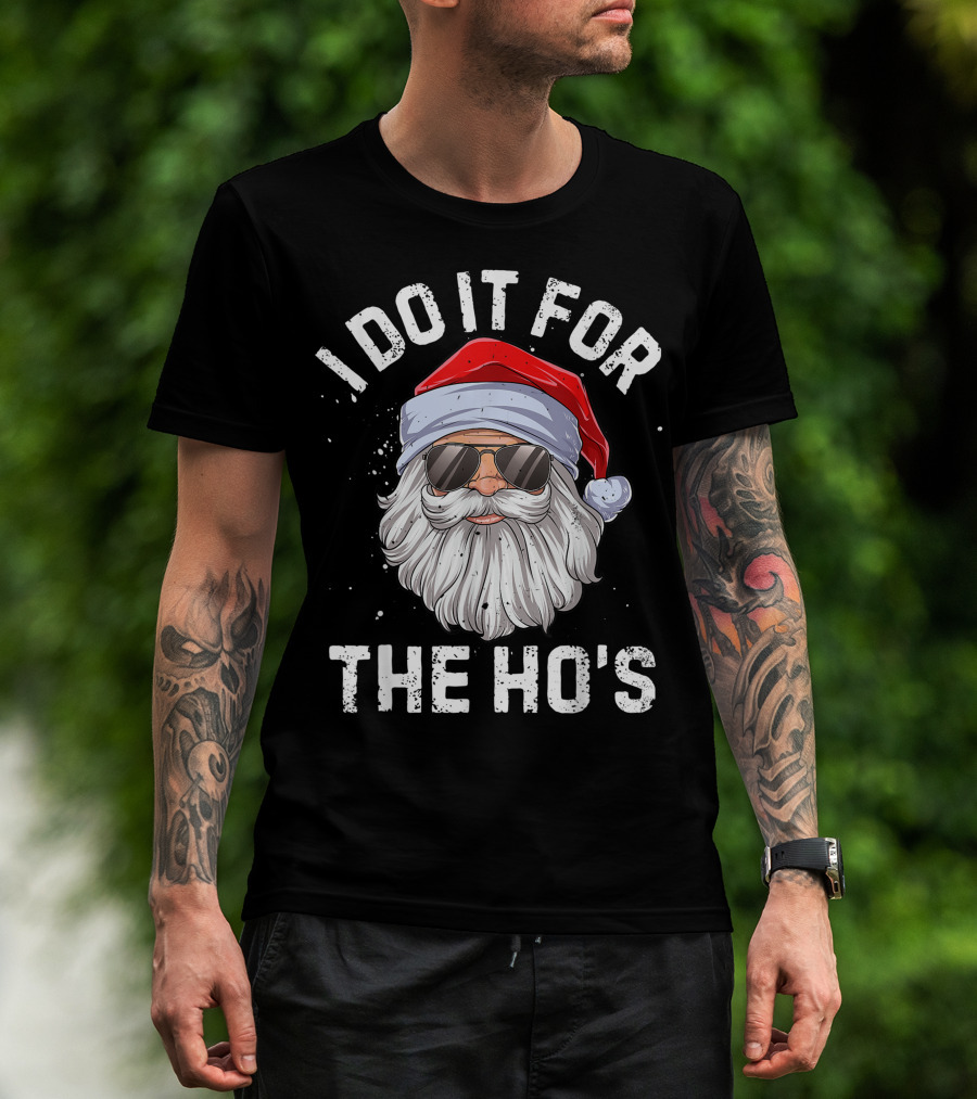 I Do It For The Ho's Funny Inappropriate Santa With Sunglasses And Red Hat T-Shirt