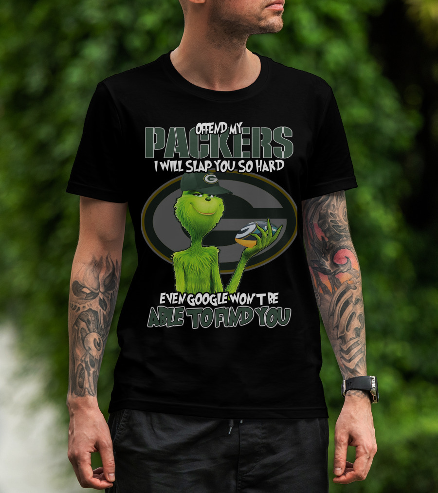 Offend My Packers I Will Slap You So Hard Even Google Won't Be Able To Find You Grinch Green Bay Packers T-Shirt
