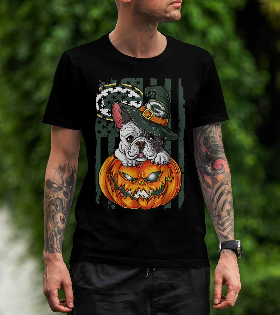 Hlw Bulldog Green Bay Packers Halloween Pumpkin Wizard Hat T-Shirt