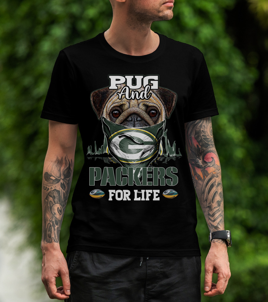 Pug And Packers For Life Green Bay Packers T-Shirt
