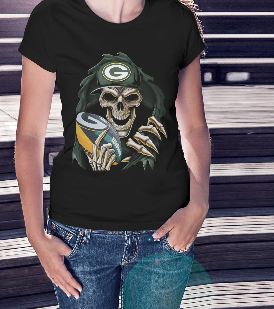 Skull Holding Wilson Football Green Bay Packers T-Shirt