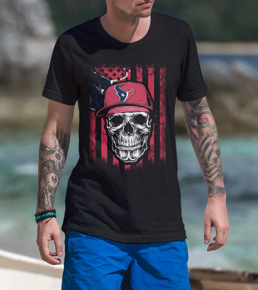 Houston Texans Logo Skull Patriot Flag T-Shirt