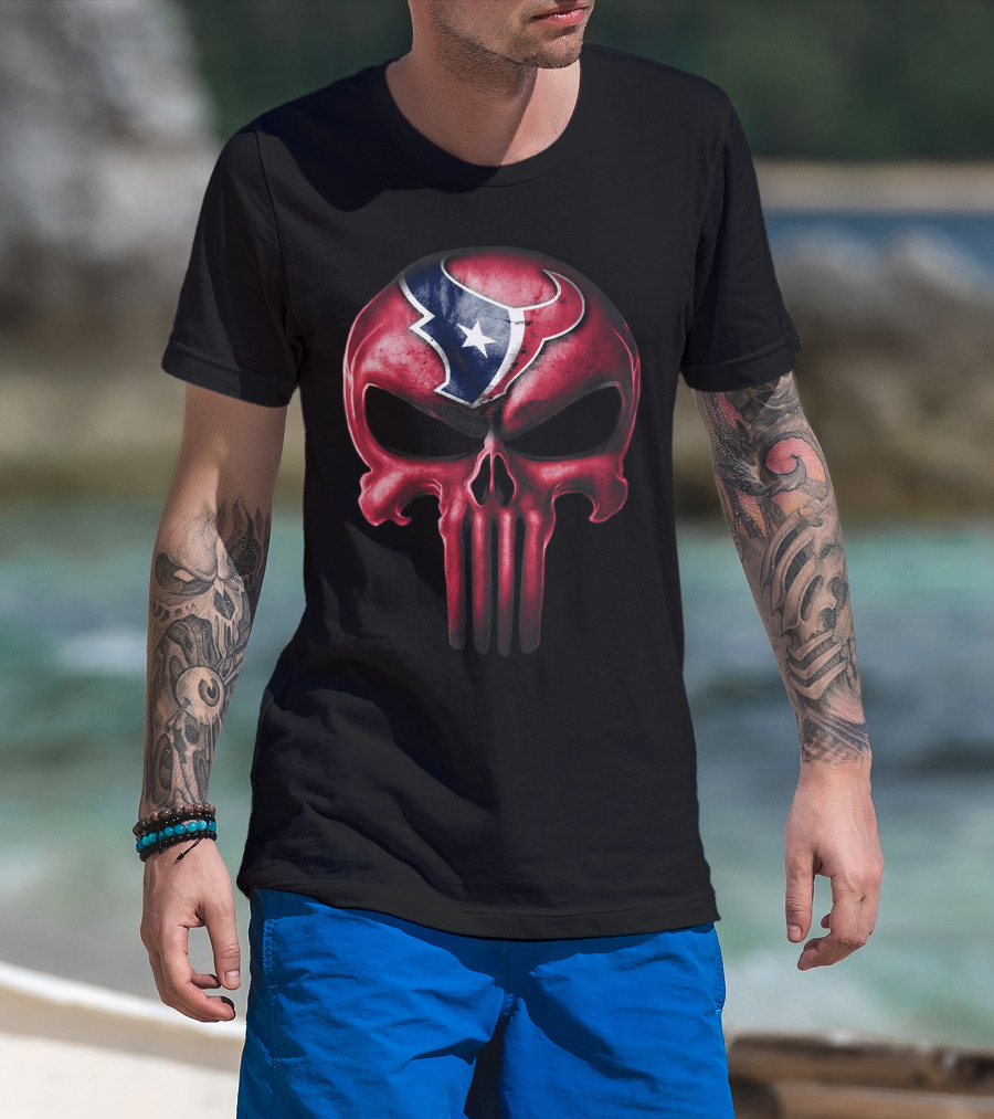 Skull Houston Texans Logo Red And Blue Fusion T-Shirt