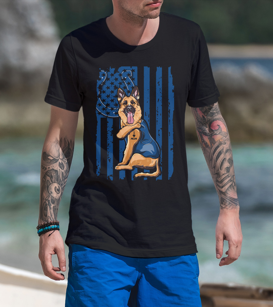 German Shepherd Colts Flag Tattoo I Love Mom T-Shirt