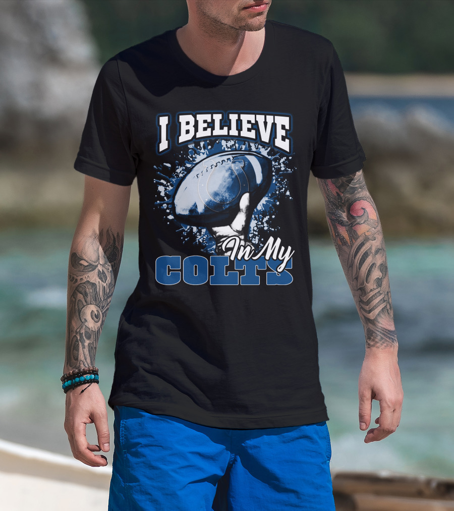 The I Believe In My Colts T-shirt is designed for everyday wear and a consistent fit. Fabric is pre-shrunk ring-spun cotton with durable stitching. See the size chart below for exact measurements.