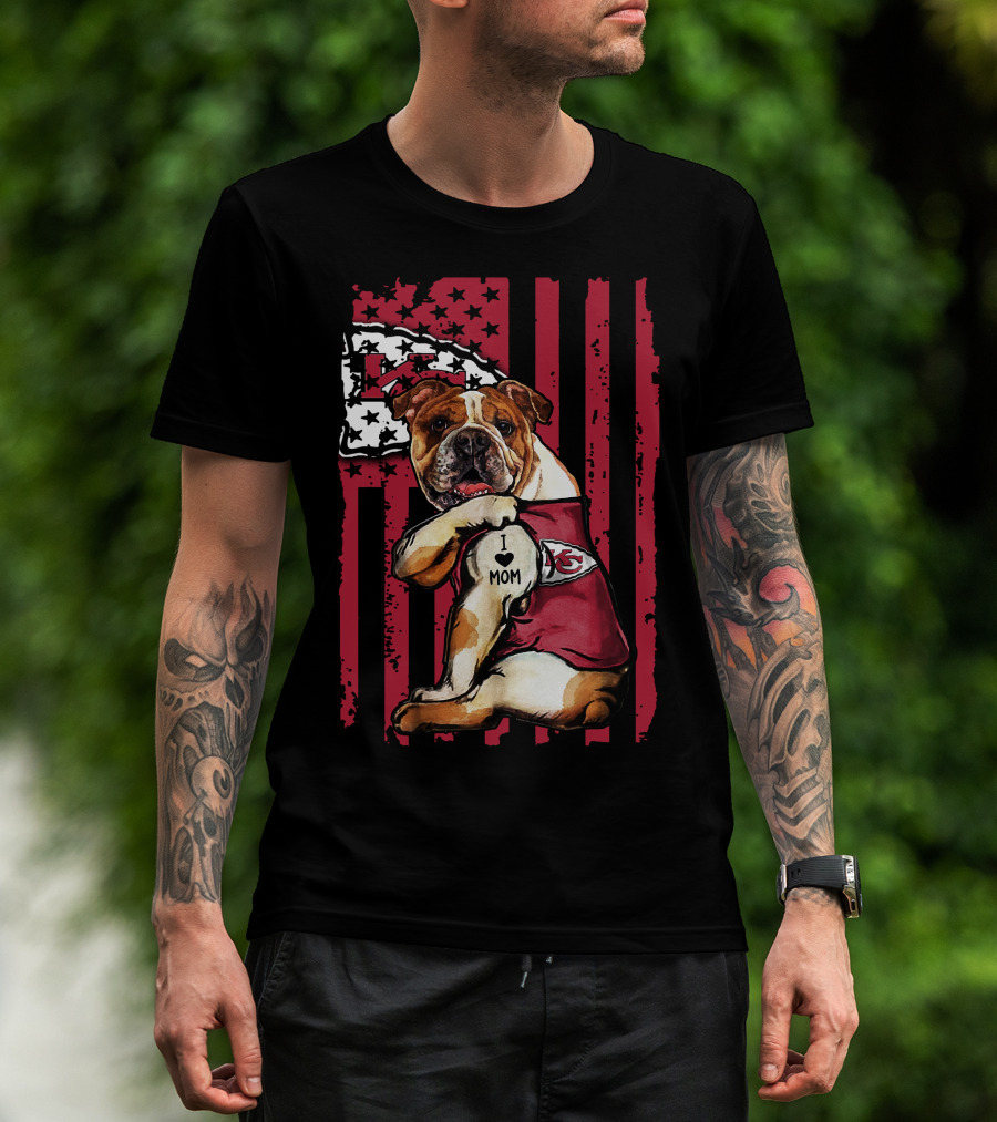 Bulldog I Love Mom Kansas City Chiefs American Flag T-Shirt