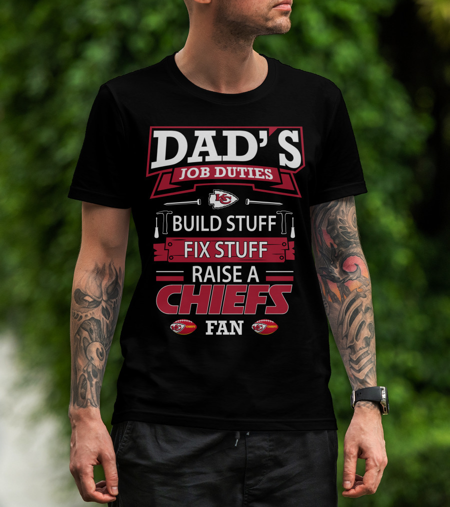 Dad's Job Duties Build Stuff Fix Stuff Raise A Chiefs Fan Kansas City Chiefs T-Shirt