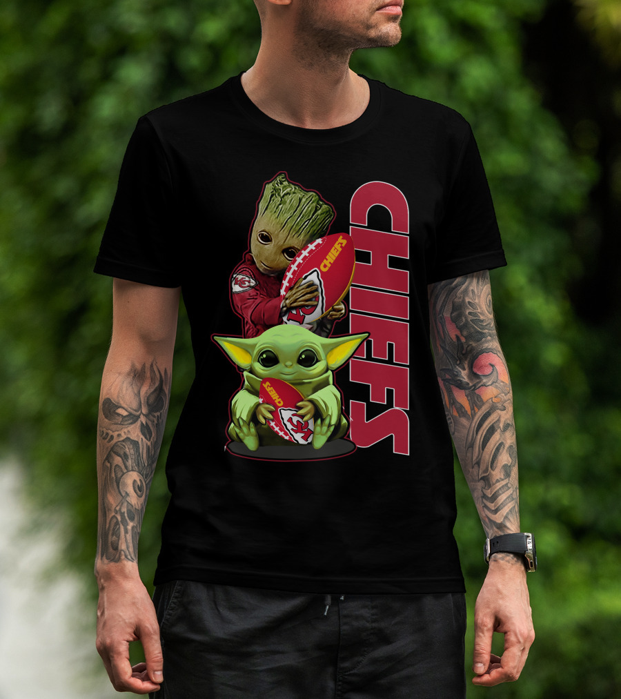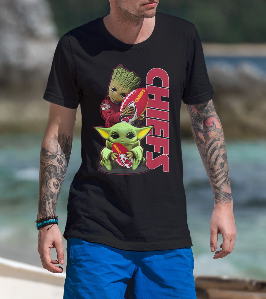 Grzd Chiefs Kansas City Groot And Baby Yoda Football T-Shirt