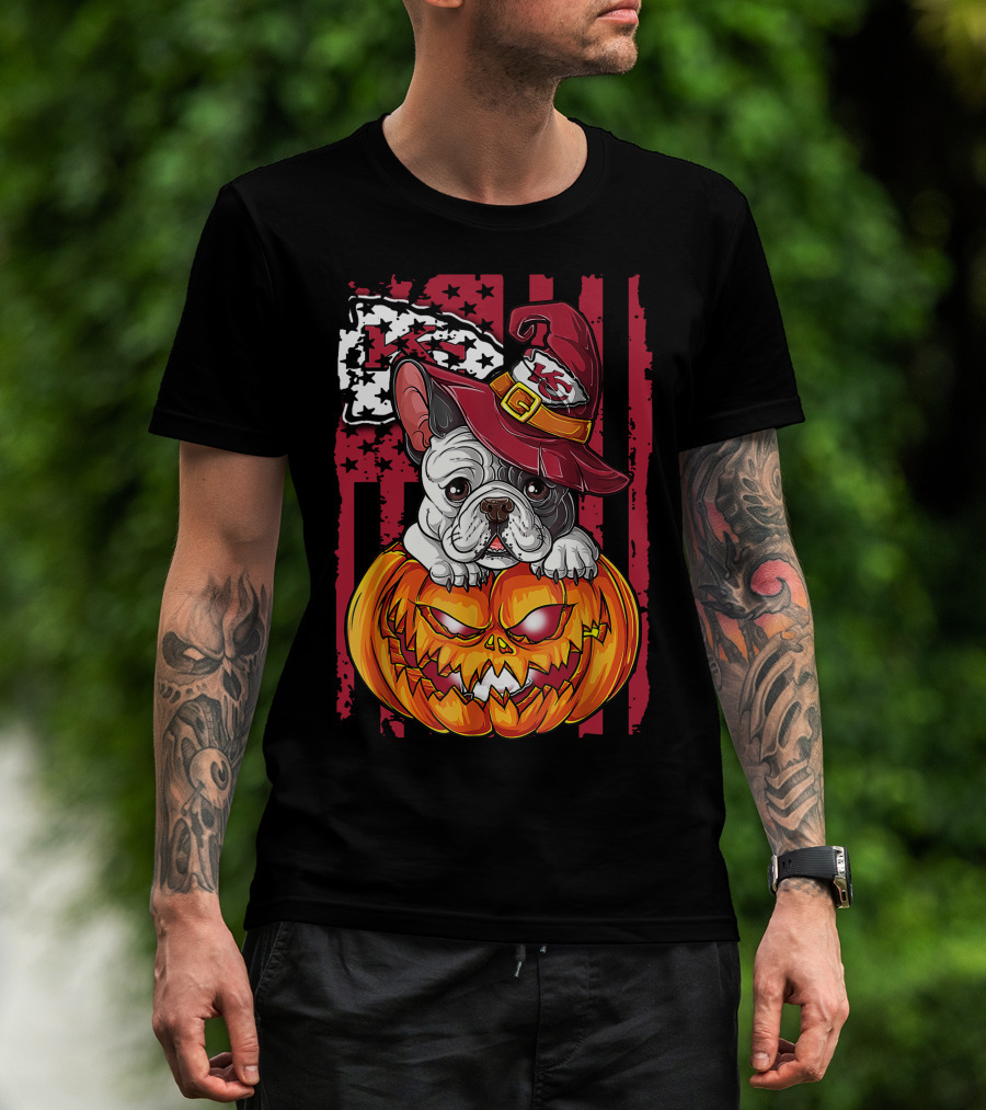 Hlw Bulldog Kansas City Chiefs Halloween Pumpkin Wizard Hat T-Shirt
