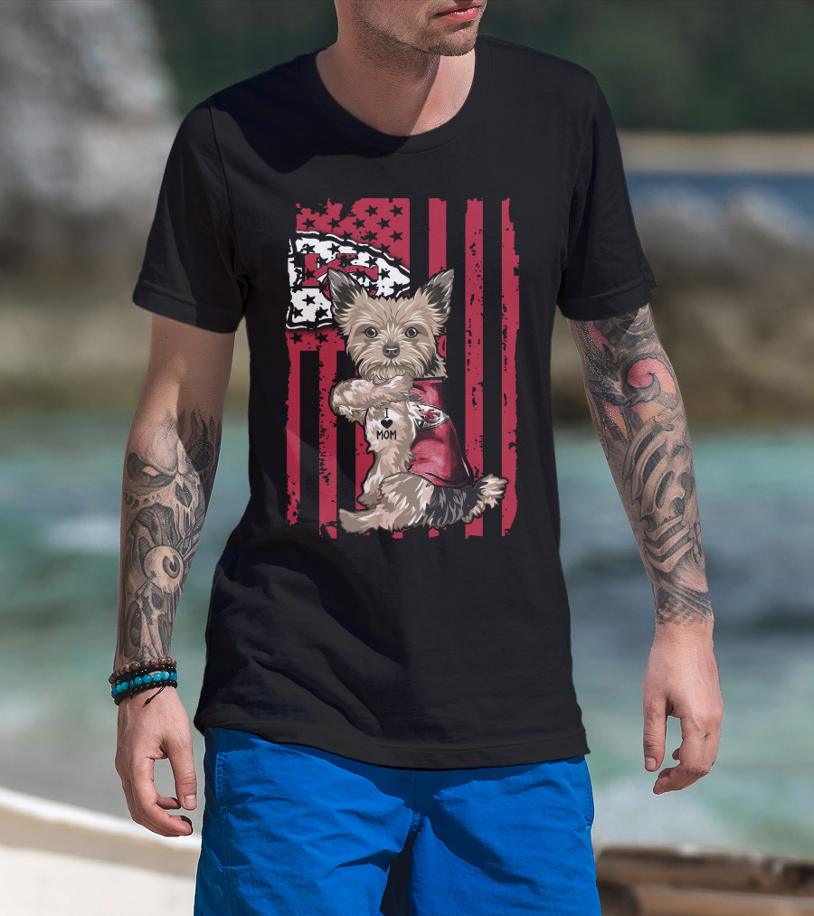 Yorkshire Terrier I Love Mom Kansas City Chiefs Flag T-Shirt