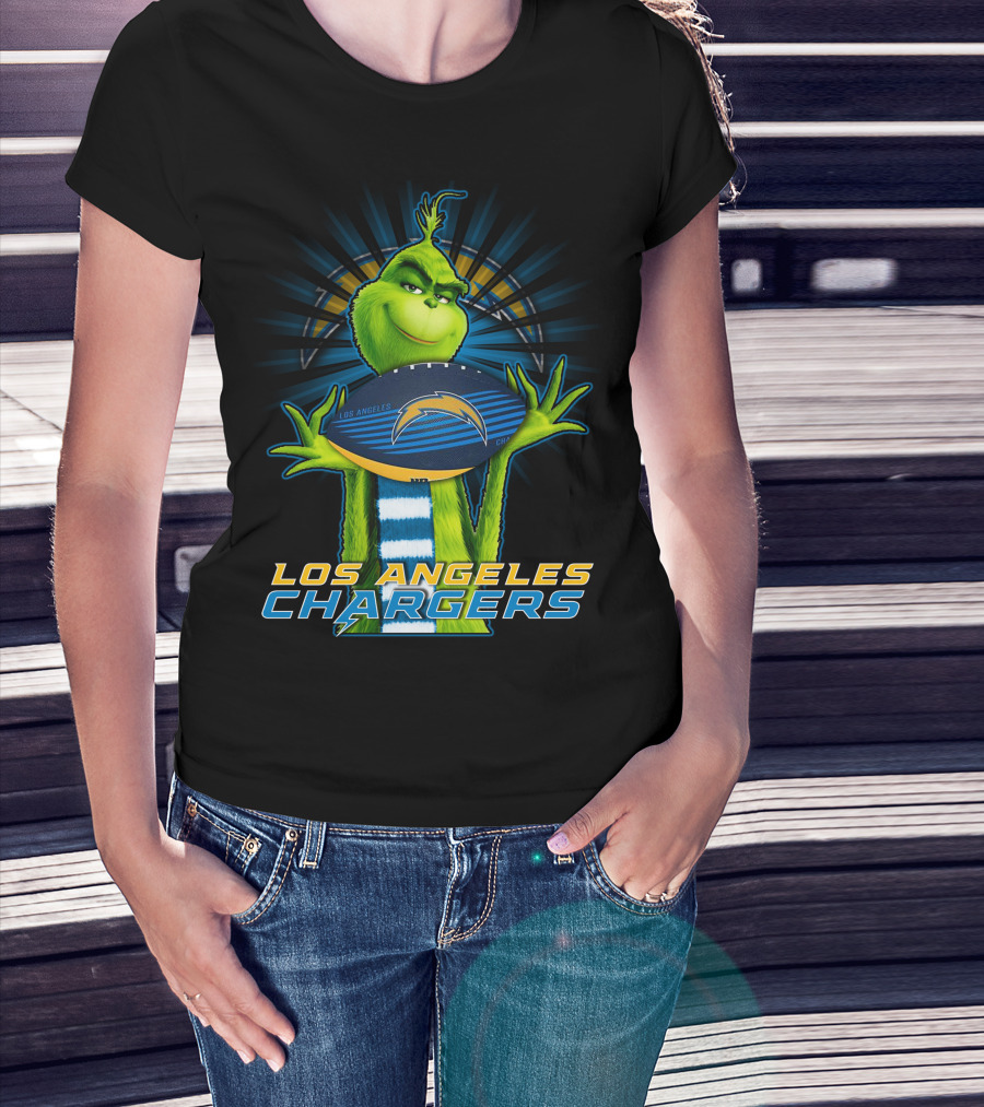 Los Angeles Chargers Grinch Holding Football T-Shirt