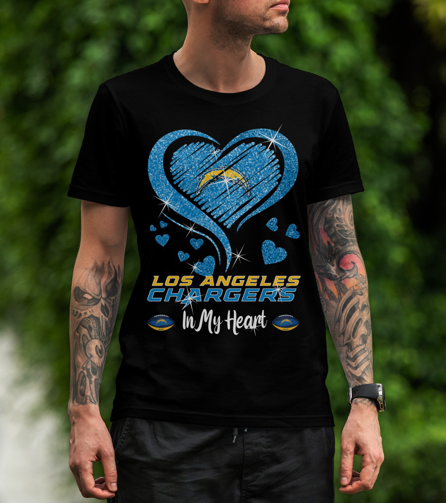 Los Angeles Chargers In My Heart Sparkling Blue Heart T-Shirt