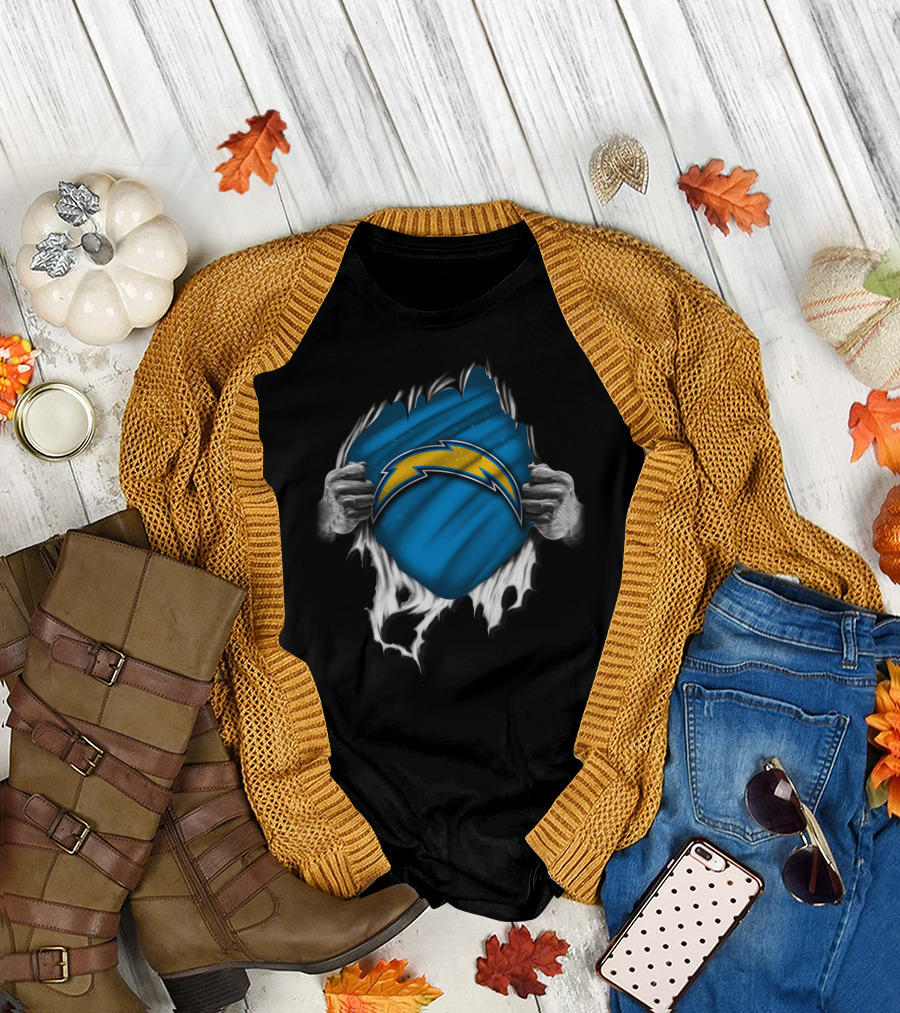 Torn Los Angeles Chargers Lightning Bolt Reveal T-Shirt