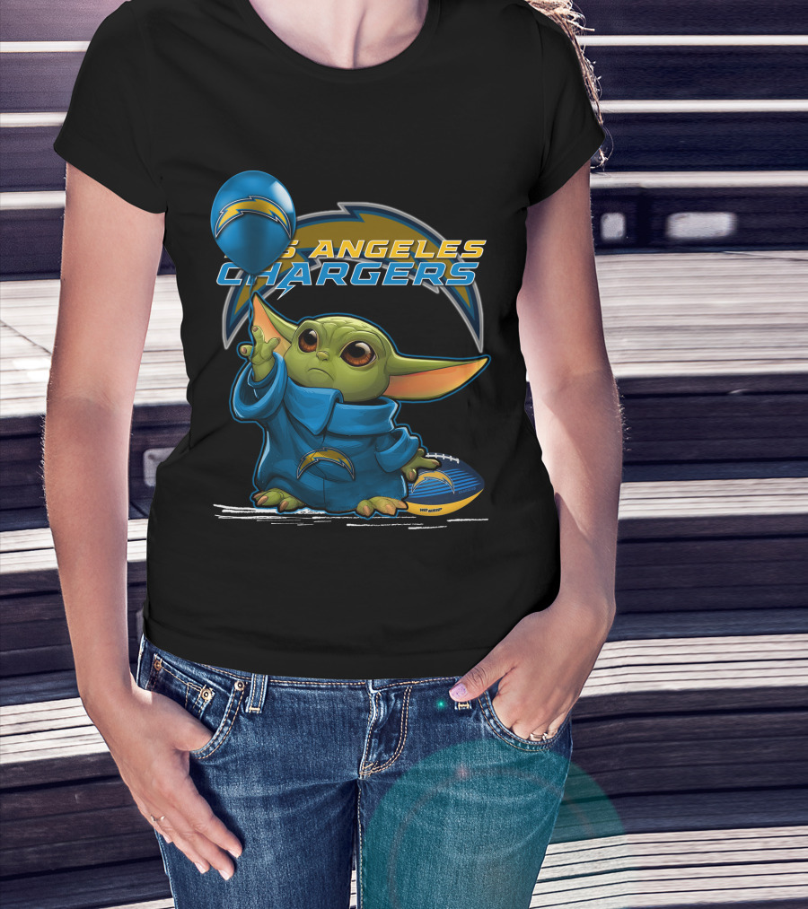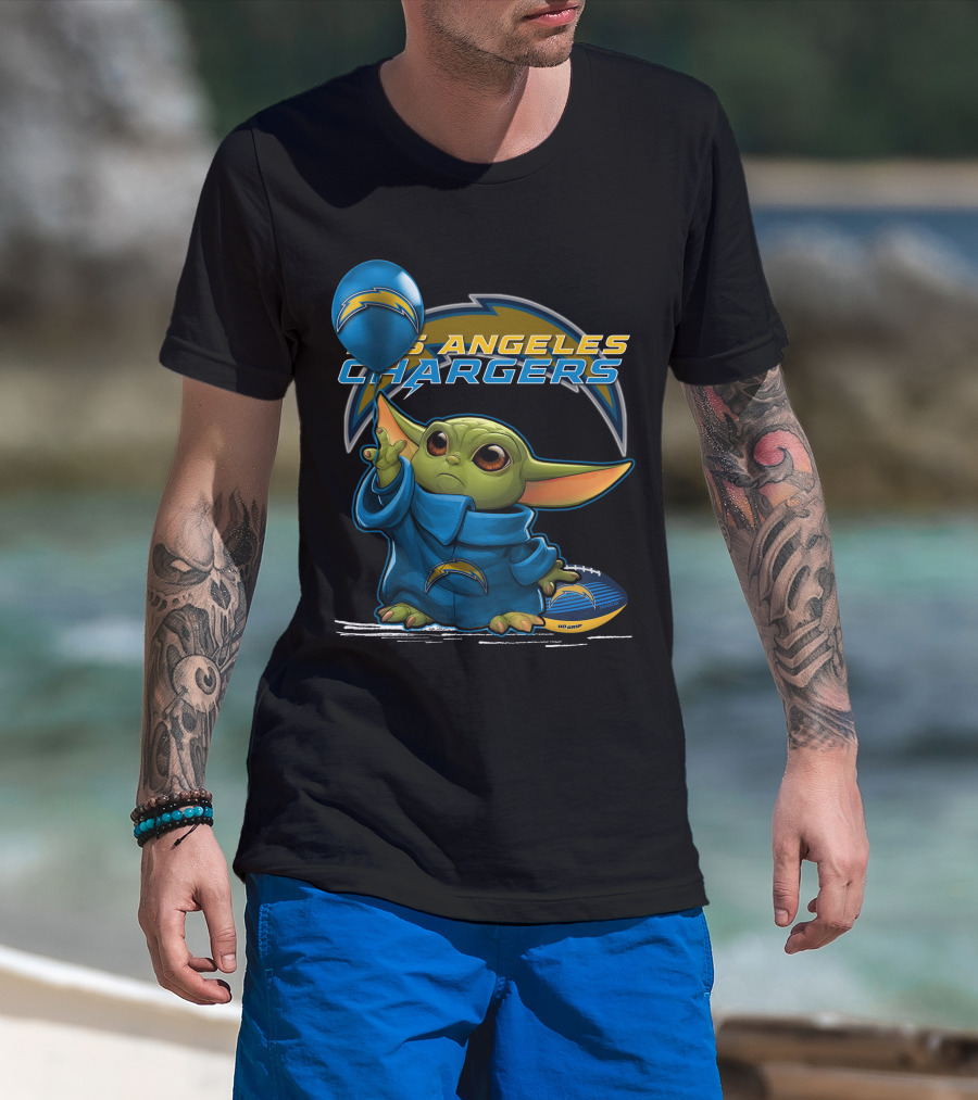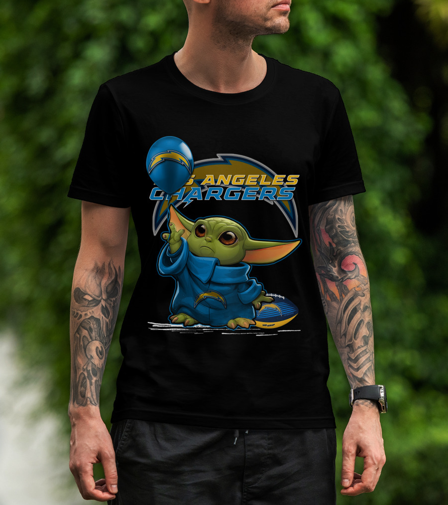 Yoda Los Angeles Chargers Football Balloon Among Stars T-Shirt