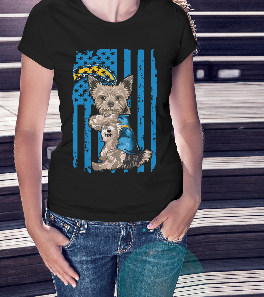 Yorkshire Terrier I Love Mom Los Angeles Chargers T-Shirt