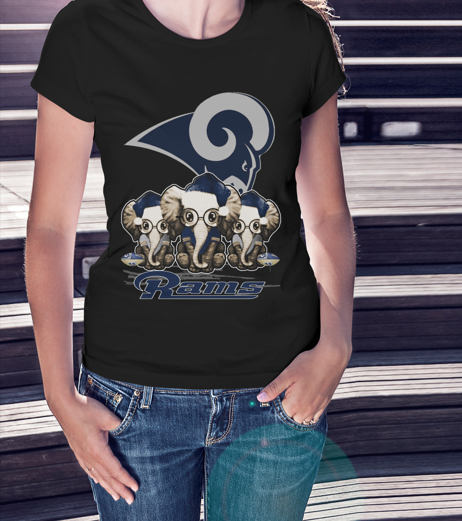 The Elephant Xmas Los Angeles Rams T-shirt is designed for everyday wear and a consistent fit. Fabric is pre-shrunk ring-spun cotton with durable stitching. See the size chart below for exact measurements.