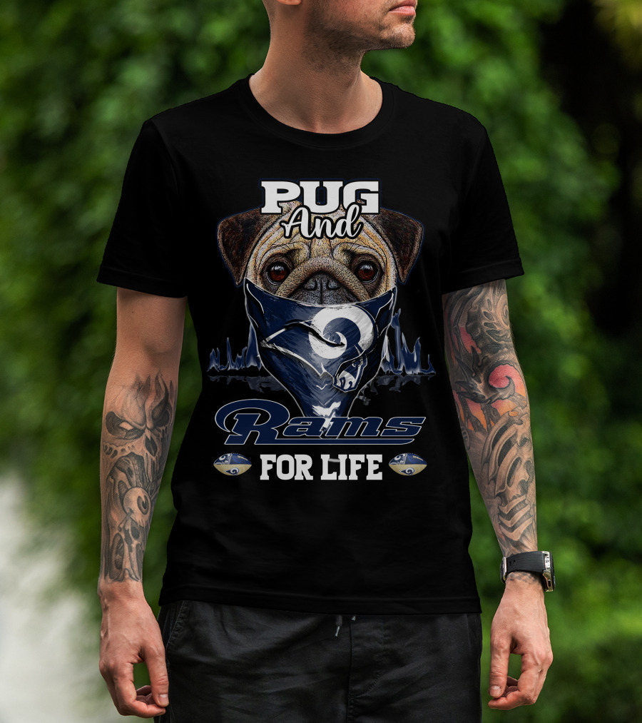 The Pug and Rams for Life T-shirt is designed for everyday wear and a consistent fit. Fabric is pre-shrunk ring-spun cotton with durable stitching. See the size chart below for exact measurements.