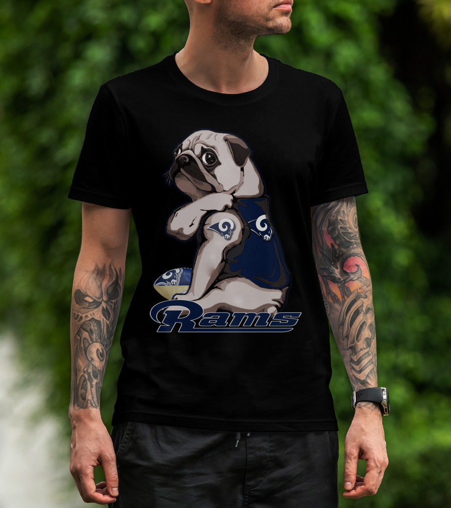 The Pug Rams Football Team Fan T-shirt is designed for everyday wear and a consistent fit. Fabric is pre-shrunk ring-spun cotton with durable stitching. See the size chart below for exact measurements.