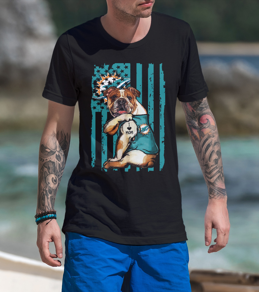 Bulldog Miami Dolphins I Love Mom T-Shirt