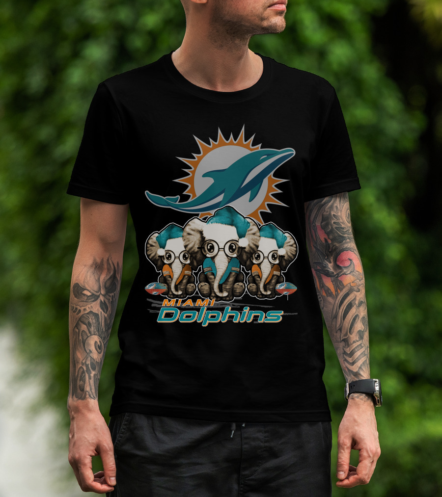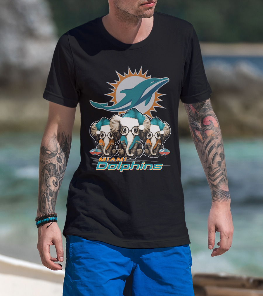 Miami Dolphins Christmas Elephants T-Shirt