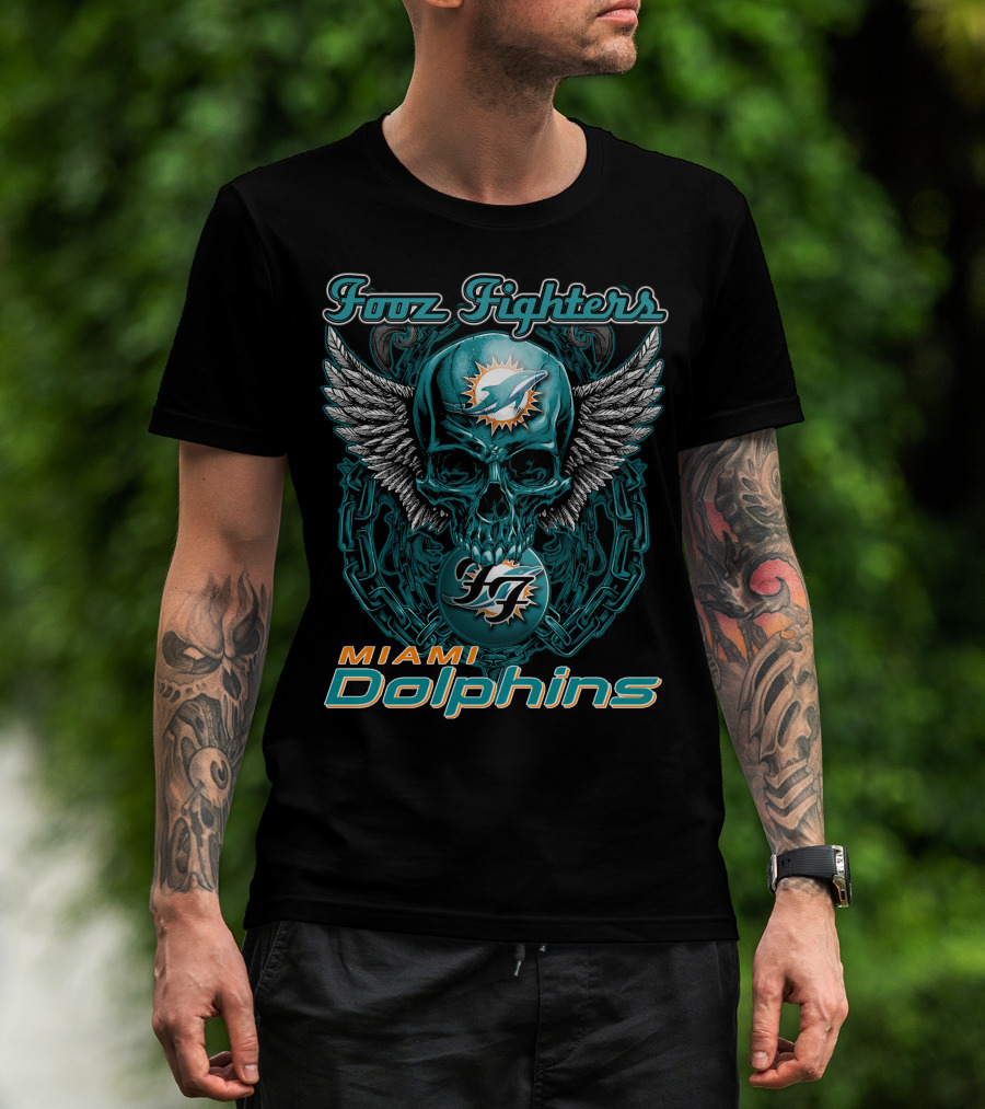 The Foo Fighters Miami Dolphins T-shirt is designed for everyday wear and a consistent fit. Fabric is pre-shrunk ring-spun cotton with durable stitching. See the size chart below for exact measurements.