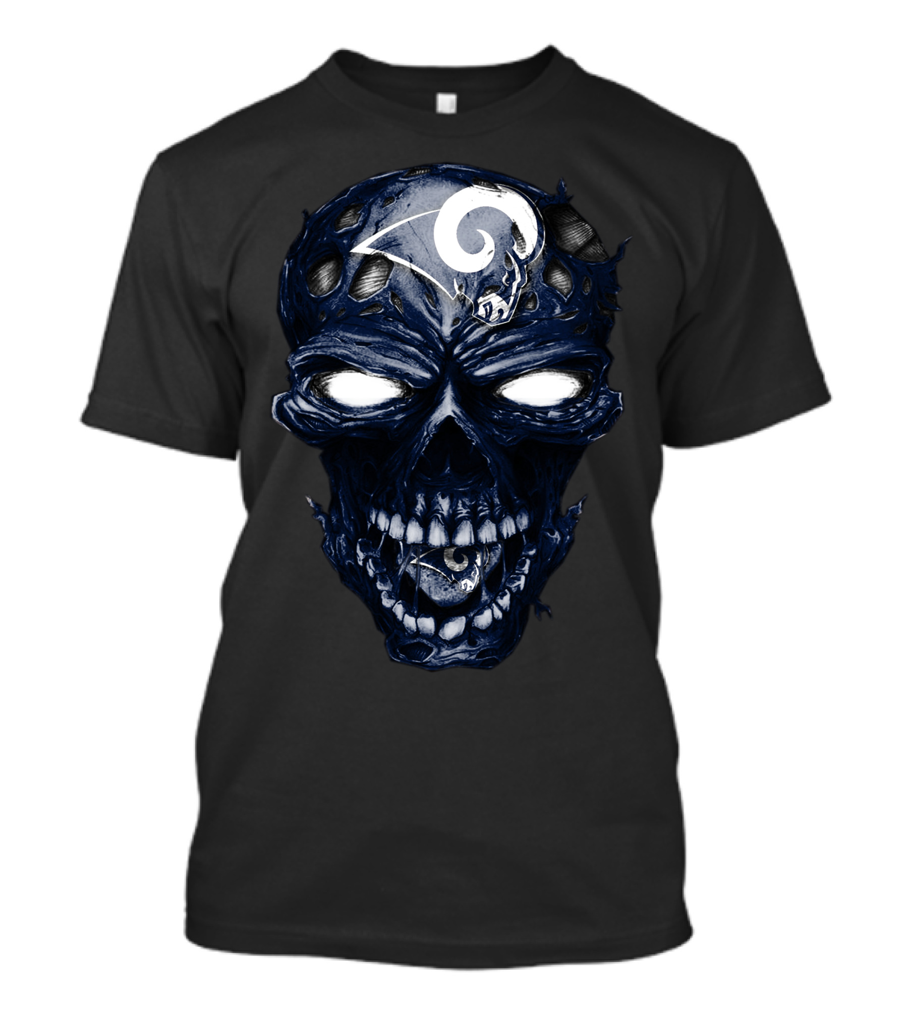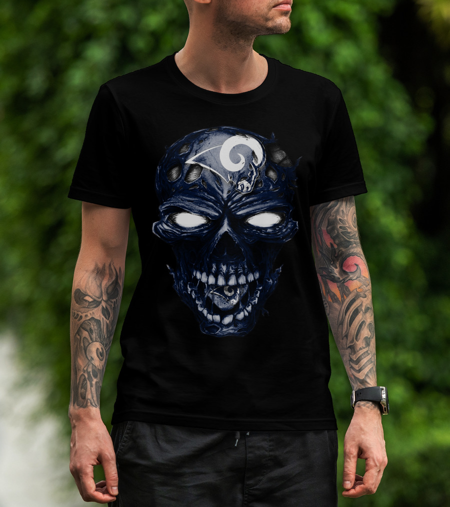 Skull Los Angeles Rams Distressed Logo Face T-Shirt