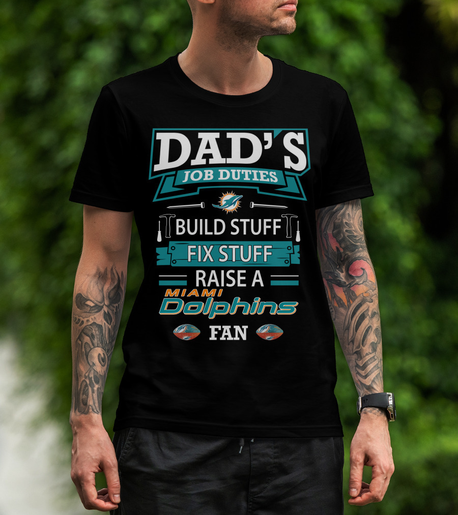 Dad's Job Duties Build Stuff Fix Stuff Raise A Miami Dolphins Fan T-Shirt