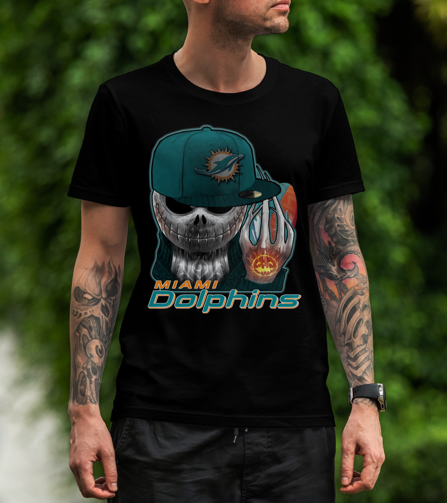 Miami Dolphins Skull With Jack-O'-Lantern Glove T-Shirt