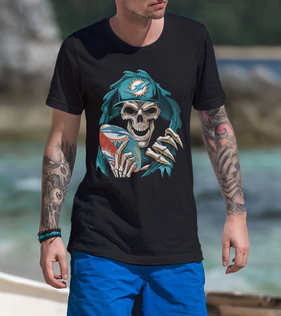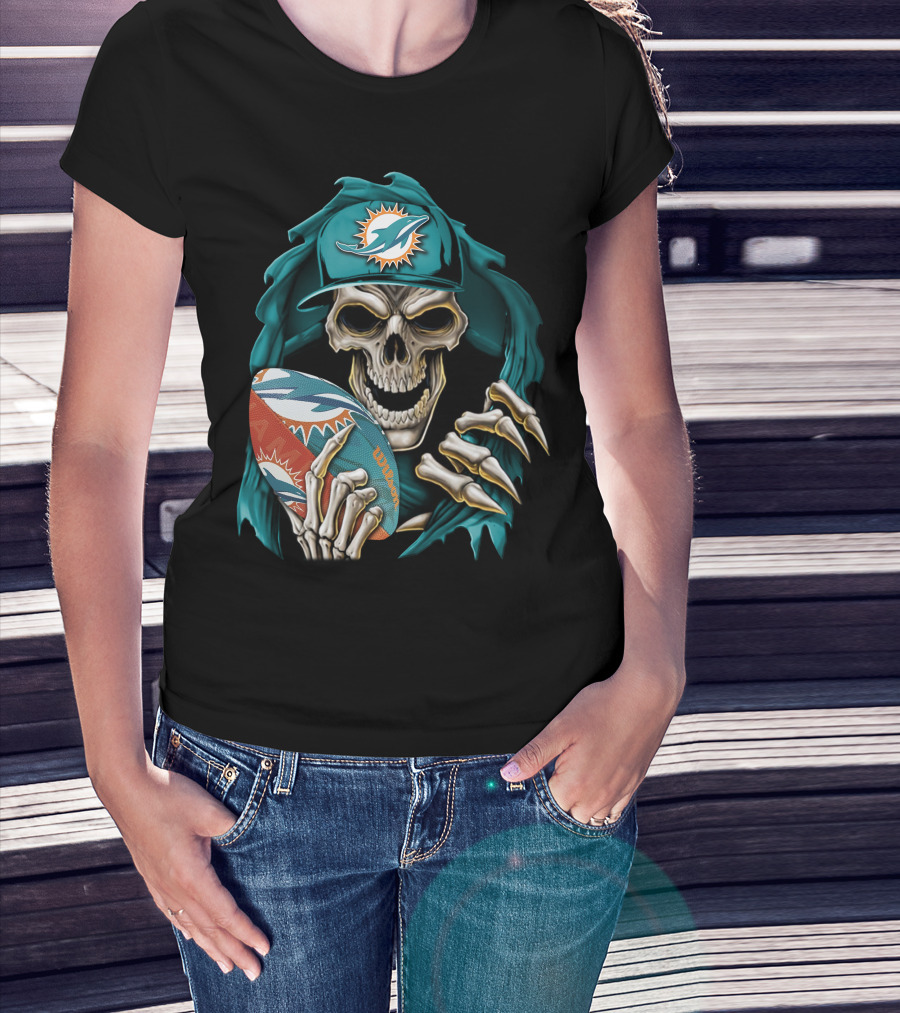 Skullbong Miami Dolphins Football Skeleton T-Shirt