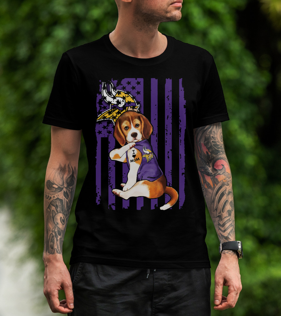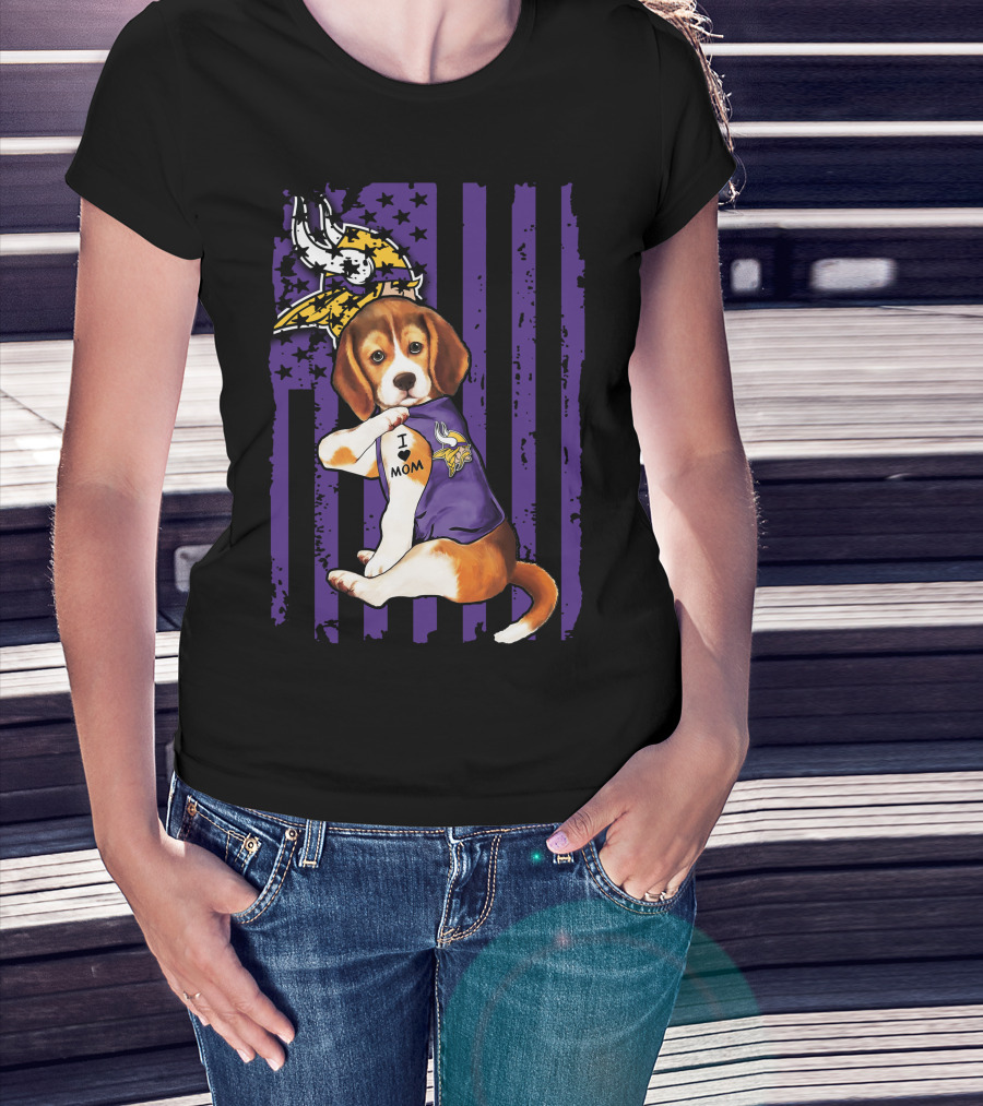 Beagle I Love Mom Minnesota Vikings Purple Flag T-Shirt