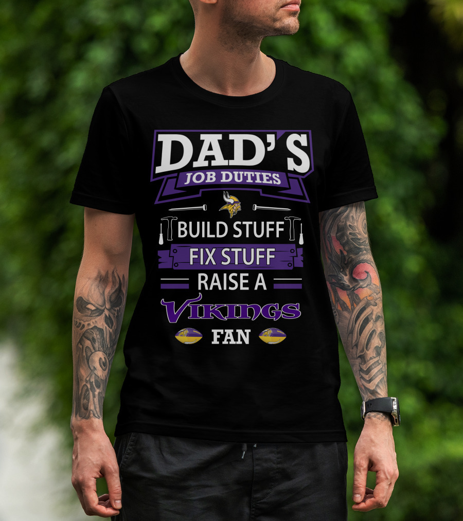 DAD'S JOB DUTIES BUILD STUFF FIX STUFF RAISE A VIKINGS FAN T-Shirt