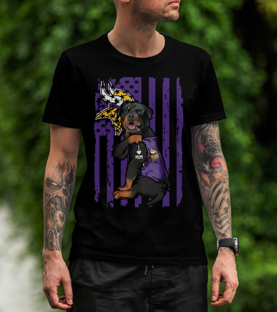 Rottweiler I Love Mom Minnesota Vikings Vikings Logo Flag T-Shirt