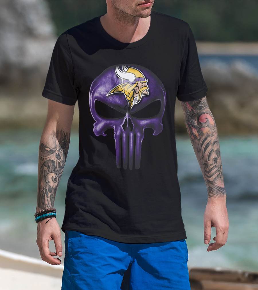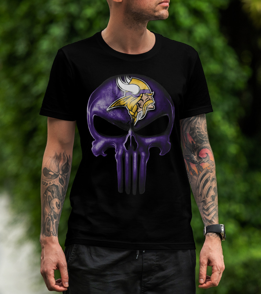 The Skull Minnesota Vikings T-shirt is designed for everyday wear and a consistent fit. Fabric is pre-shrunk ring-spun cotton with durable stitching. See the size chart below for exact measurements.