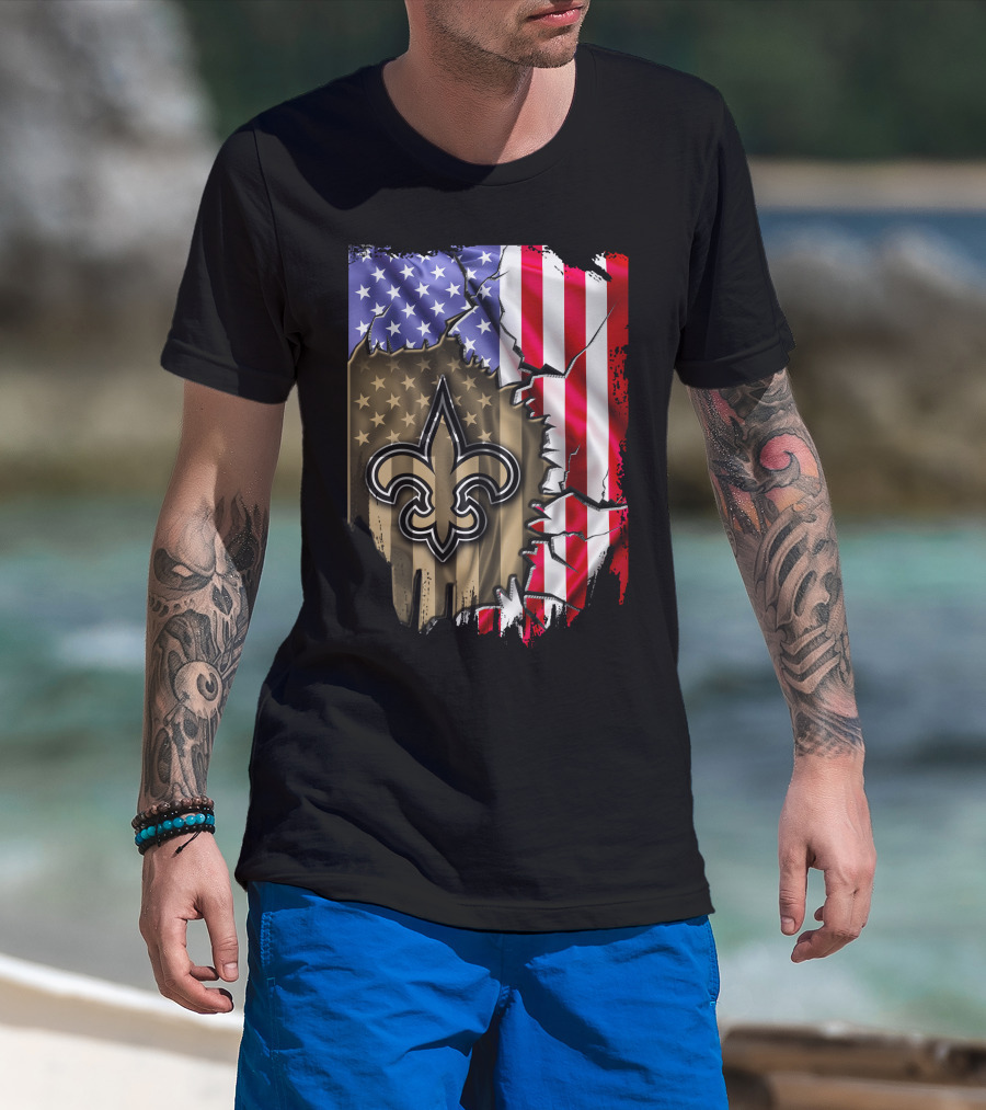 Flag V2 New Orleans Saints USA Flag Fleur-de-Lis T-Shirt