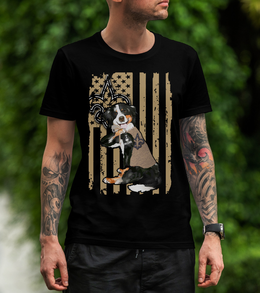 Border Collie I Love Mom New Orleans Saints Fleur-de-Lis Stripes T-Shirt