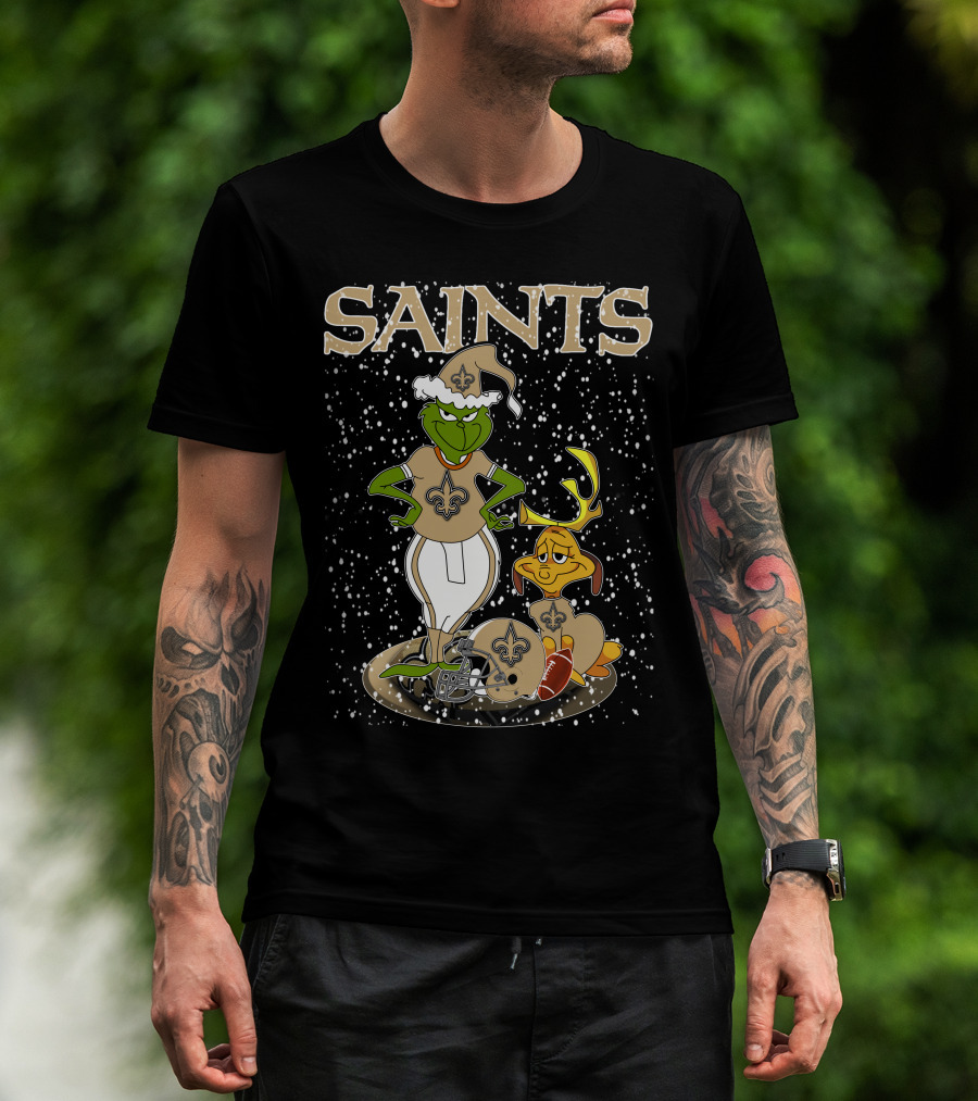 Grinchxmas New Orleans Saints Football Snowy Scene T-Shirt
