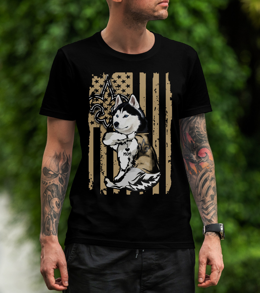 Siberian Husky Mom New Orleans Saints Fleur-de-Lis American Flag T-Shirt