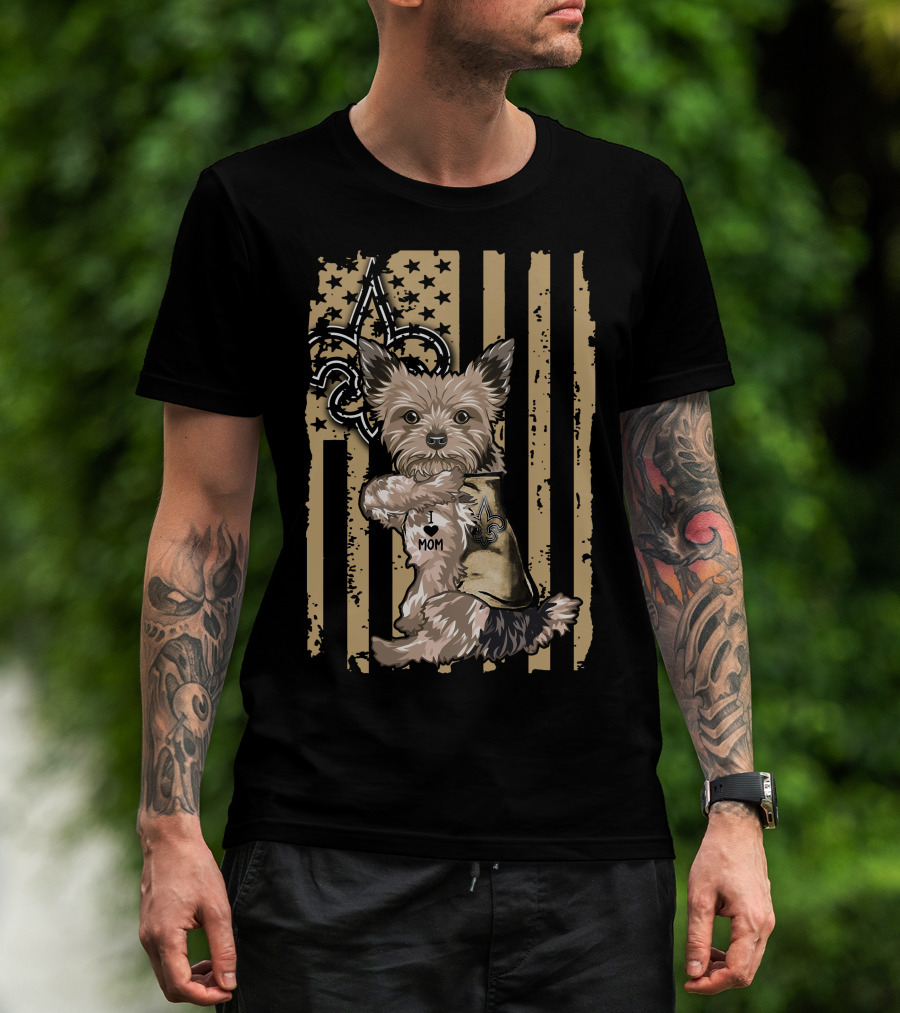 Yorkshire Terrier I Love Mom New Orleans Saints Fleur-de-Lis Stripes T-Shirt