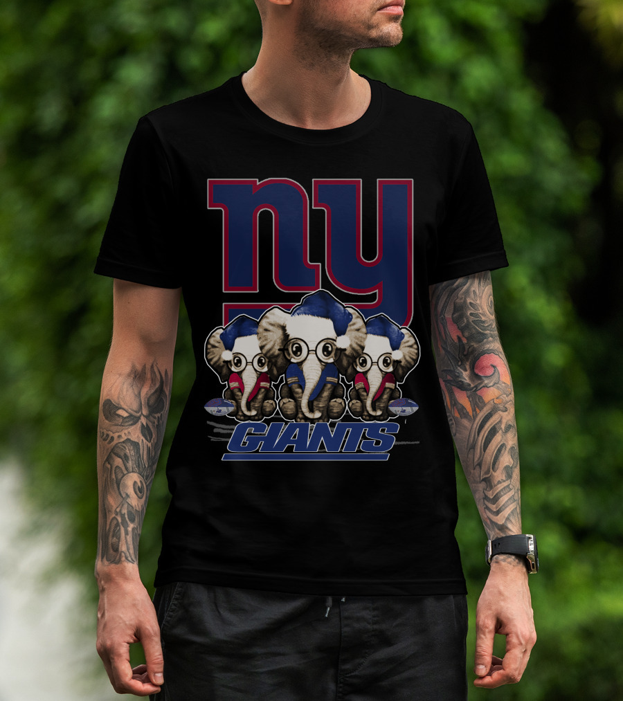 The NY Giants Christmas Elephants T-shirt is designed for everyday wear and a consistent fit. Fabric is pre-shrunk ring-spun cotton with durable stitching. See the size chart below for exact measurements.