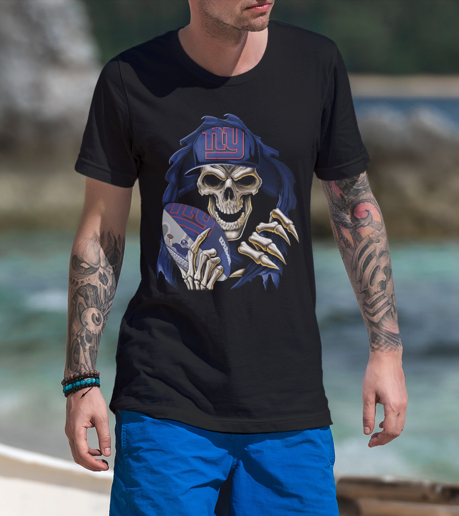 The Skullbong New York Giants Skull Football T-shirt is designed for everyday wear and a consistent fit. Fabric is pre-shrunk ring-spun cotton with durable stitching. See the size chart below for exact measurements.