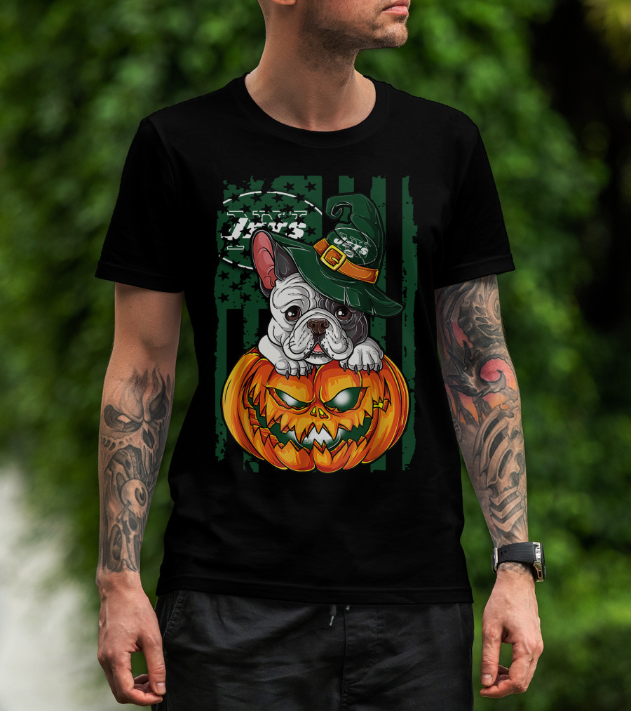 Hlw Bulldog New York Jets Halloween Pumpkin Wizard T-Shirt